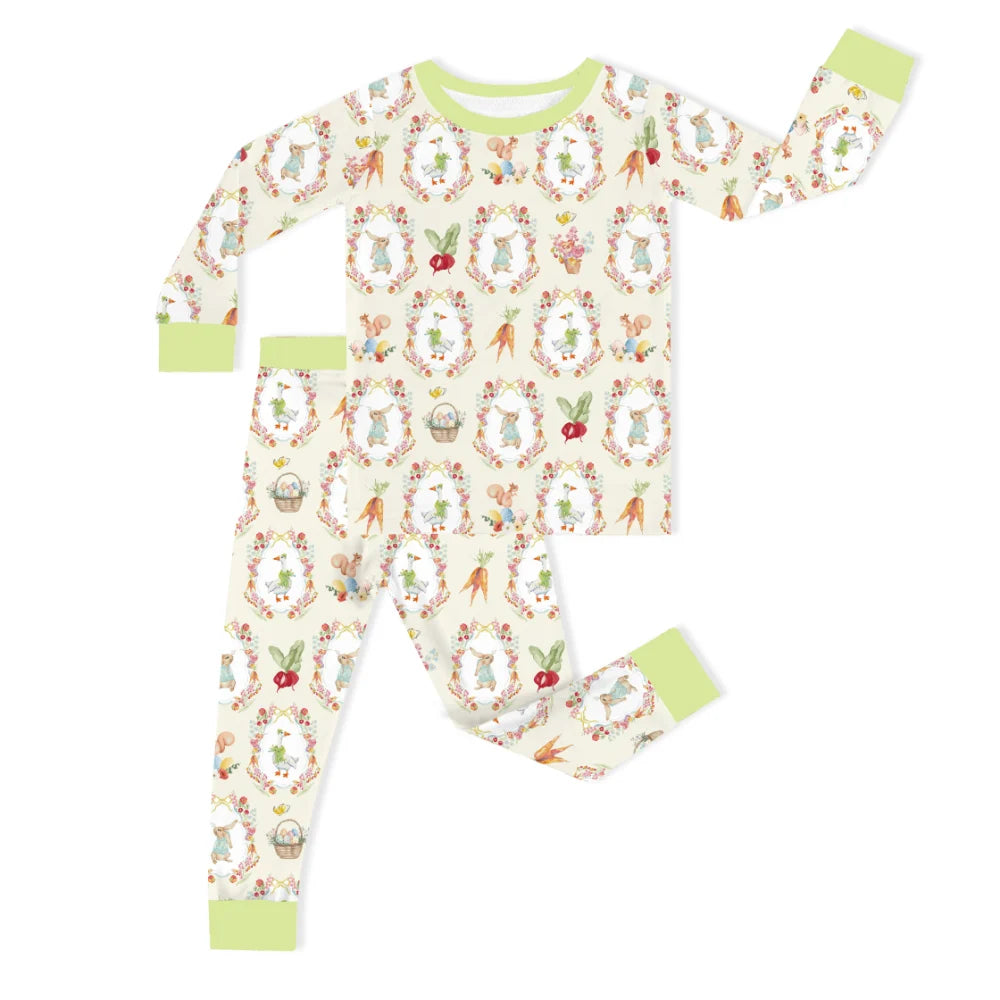 Easter Garden Bunny with Carrots Kids Bamboo Two-Piece Pajama Set