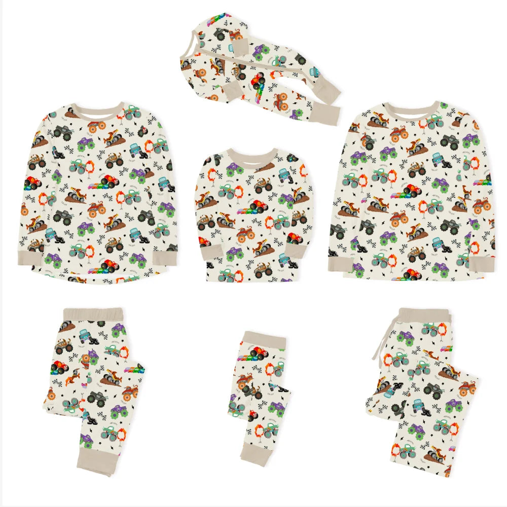 Big Wheels Truck Race Journey on Apricot Bamboo Family Matching Pajamas