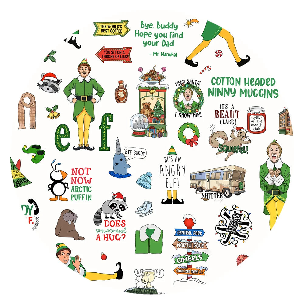 Print Description: The "Christmas Little Green Elf Stage" bring festive cheer with a playful and colorful print. Featuring a joyful green-clad elf in various fun poses, this design celebrates iconic holiday moments, like shouting "Santa! I know him!" and "We’re an Angry Elf."