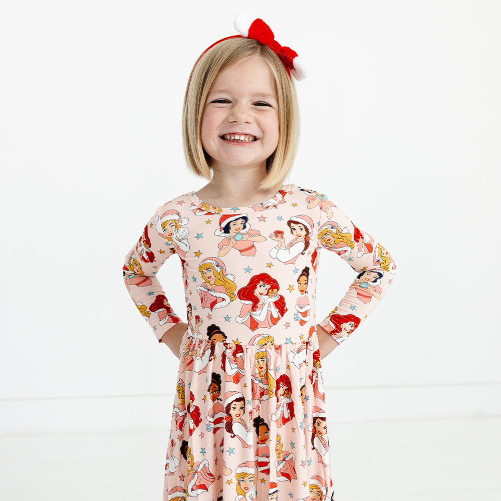 Christmas Pink Princess Kids Bamboo Long Sleeves Dress