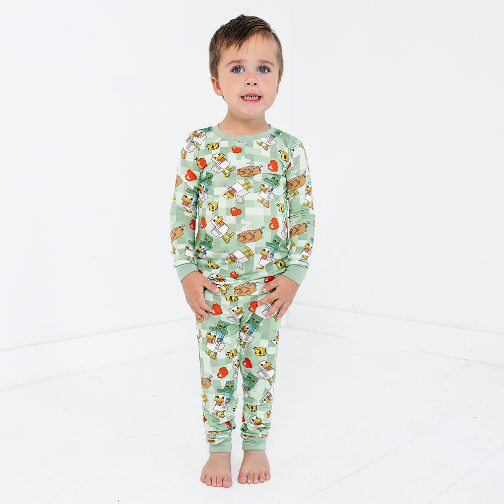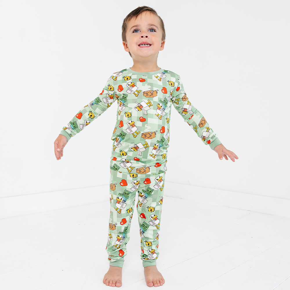 "Ready for block-building adventures!" This ultra-soft pajama set made from bamboo to prevent irritation and an elastic waistband for active play. The tagless crew neck and breathable bamboo fabric ensure comfortable sleep after a day of mining and crafting.
