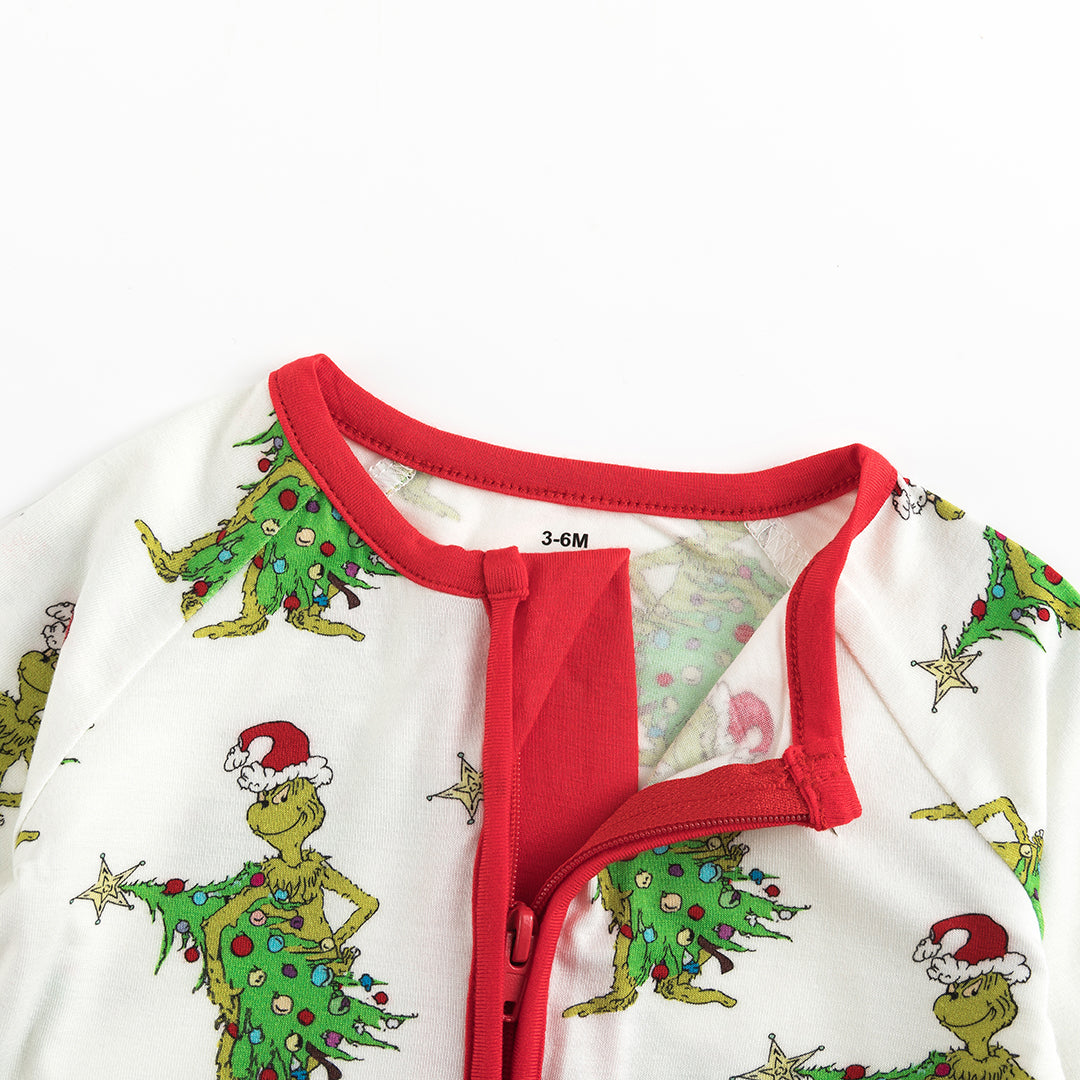 Christmas Tree Green Face Bamboo Zip Romper