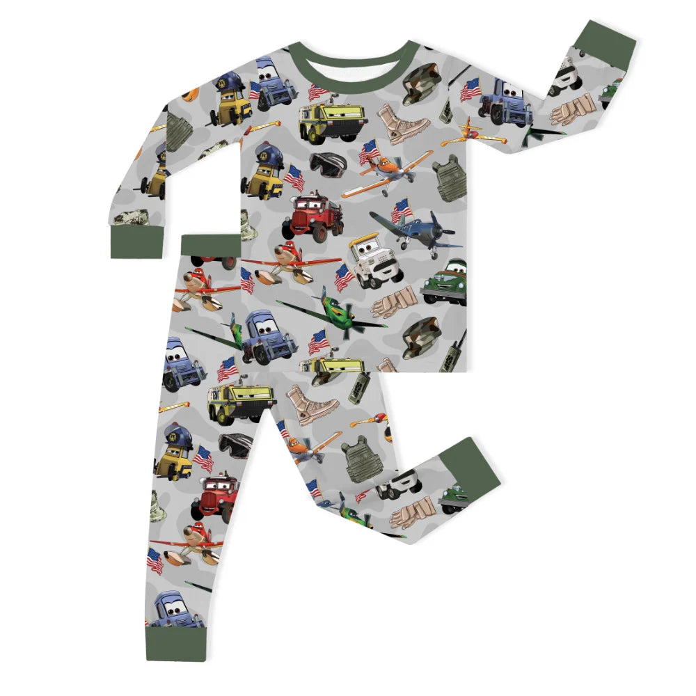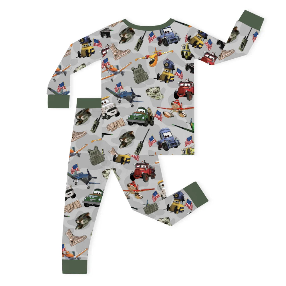 Camo Adventure Car and Airplane Kids Bamboo Two-Piece Pajama Set