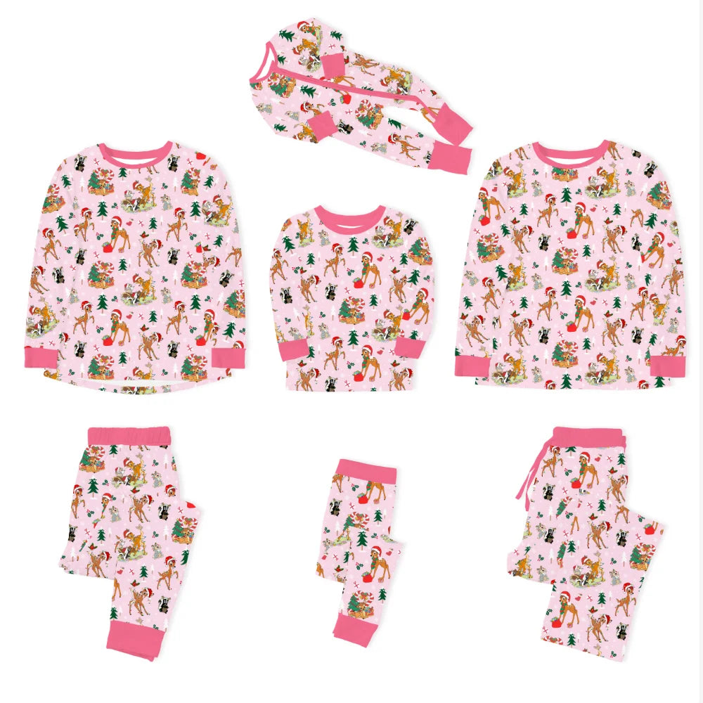 Christmas Pink Deer and Woodland Pals Bamboo Family Matching Pajamas