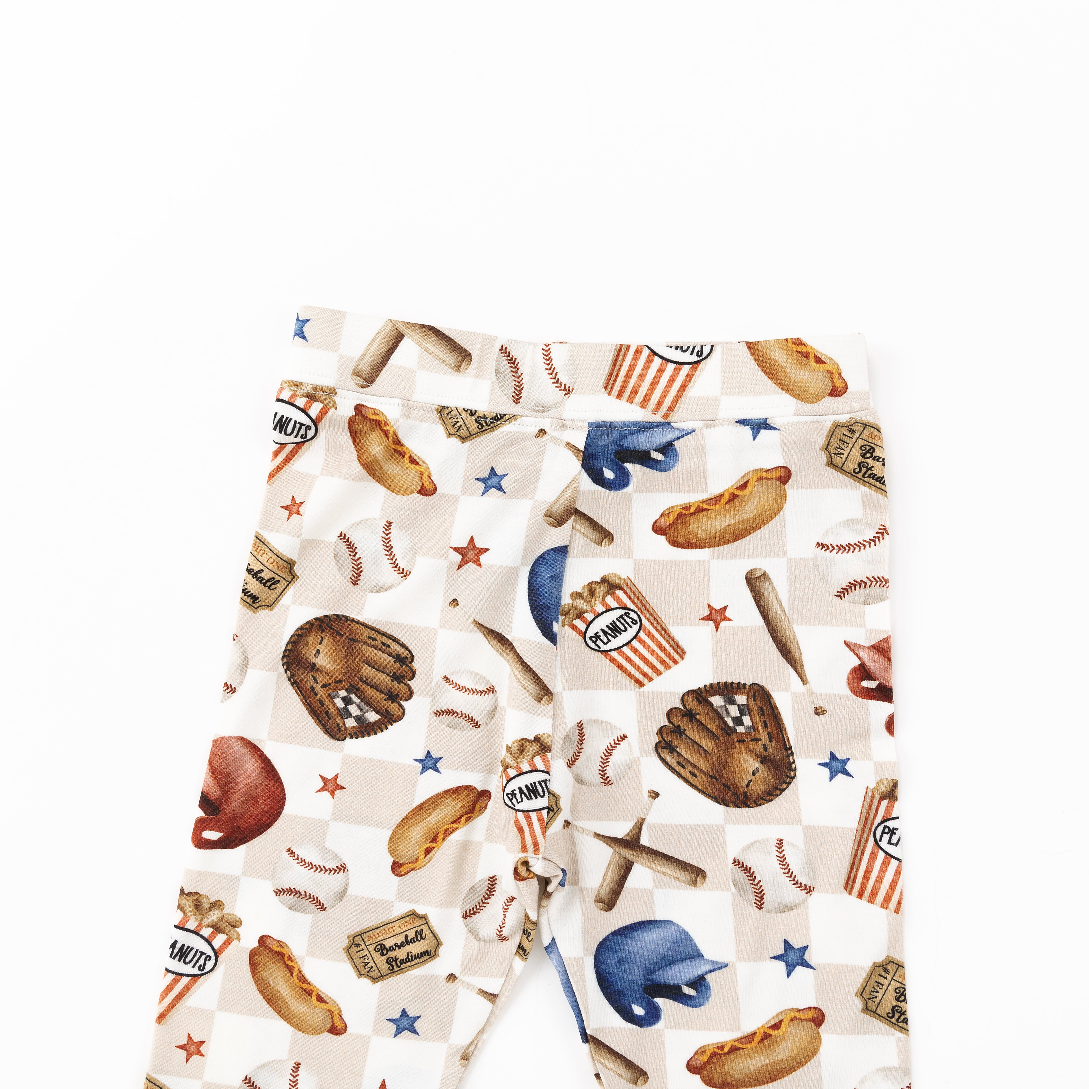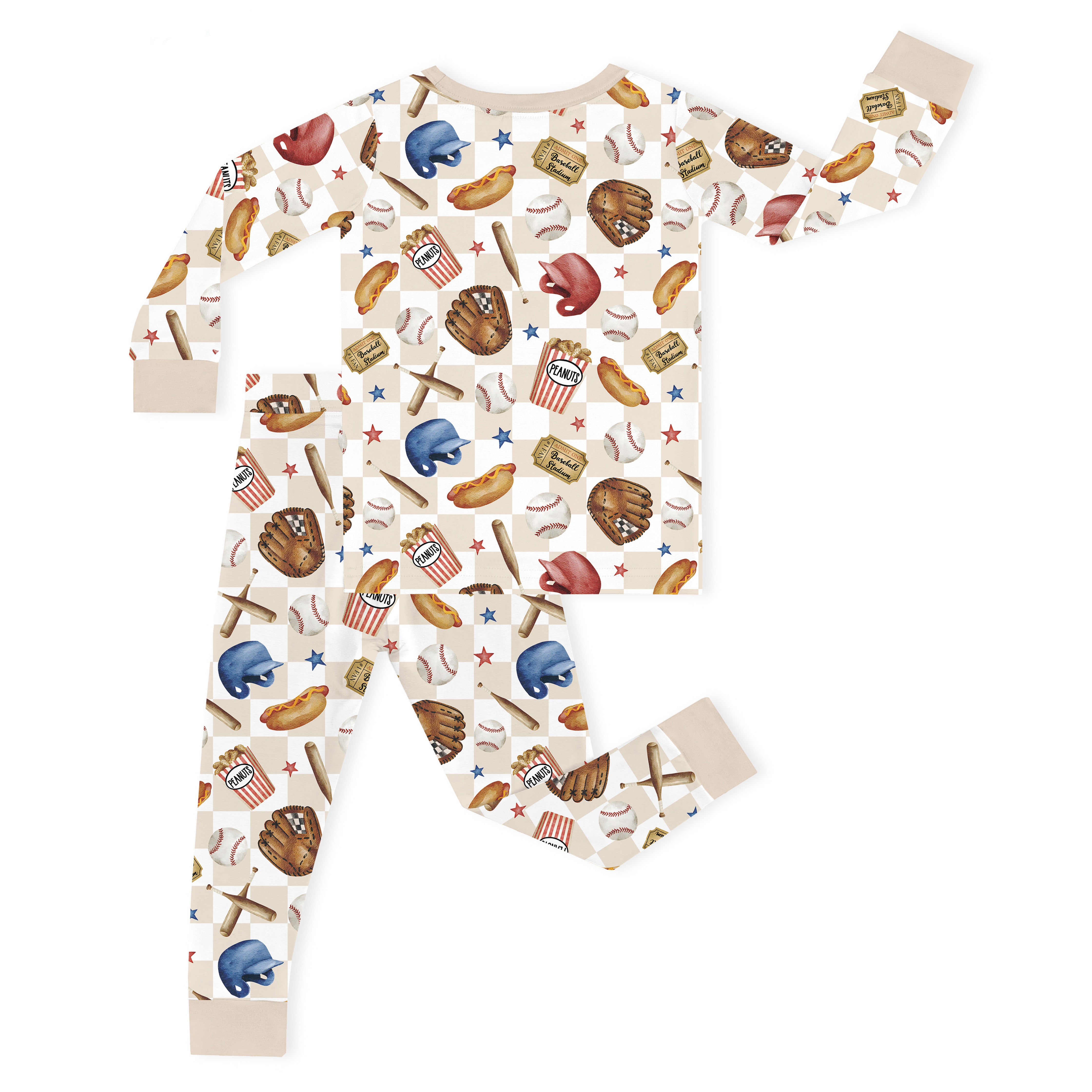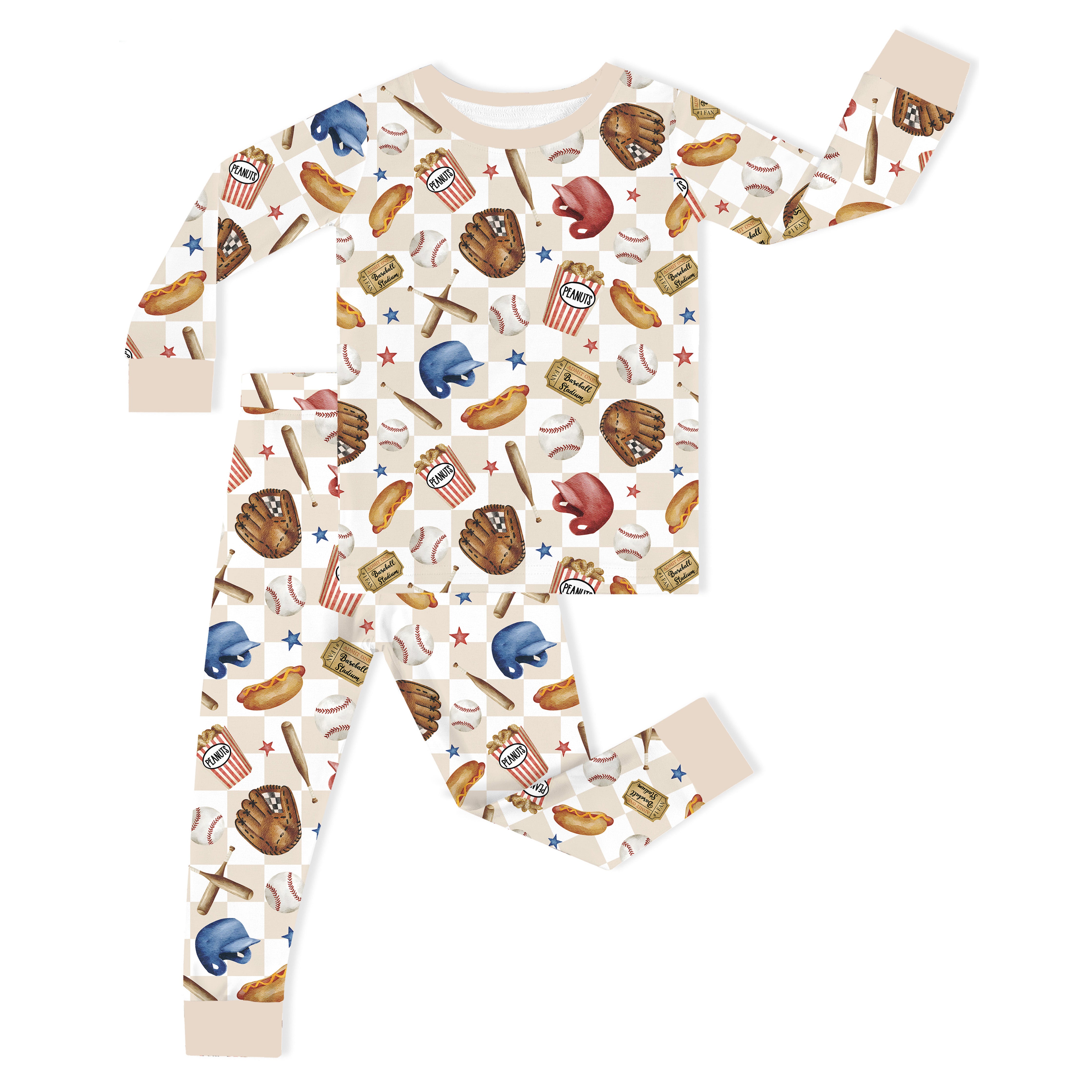Khaki Plaid Baseball Snack Adventure Kids Bamboo Two-Piece Pajama Set